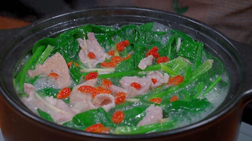 菠菜富含維生素 C 和鐵元素,豬肝則是補鐵的佳品,兩者搭配,營養豐富。