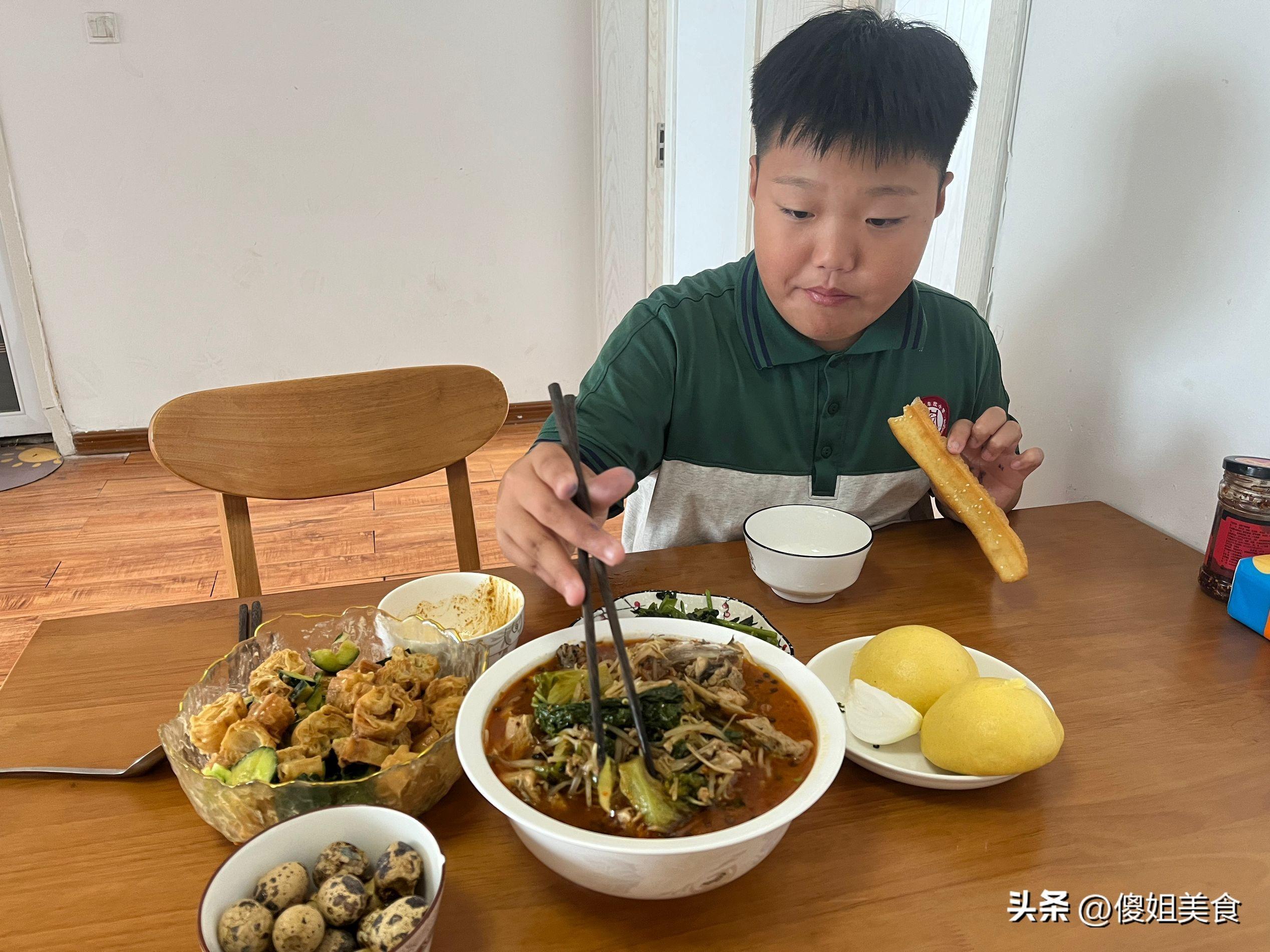 13歲的兒子最近每天回來跟我叨叨,說:同學們都管他叫小胖子。我一直和兒子說:沒事,胖也是一種福氣,胖了抵抗來纔好。但是13歲的兒子自尊心很強了,一直要求減肥,每天都讓我給他做減脂餐。我先想這麼小的孩子正需要營養的時候,不需要減肥,等到以後讀初中學習壓力大了,自然會瘦下來。爲了滿足兒子變瘦、變帥,每天中午和晚上會給他做減脂餐。我每天都會記錄一下兒子的減脂餐,這天曬了下朋友圈火了,網友們都說:這樣喫,要到200斤了!下面把我做的減脂餐分享給大家看看,是不是能喫胖?