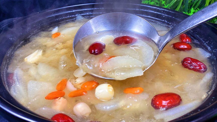百合具有潤肺止咳、清心安神的功效。銀耳,素有 “菌中之冠” 的美譽,富含天然植物性膠質,有滋陰、潤燥、清熱的作用。