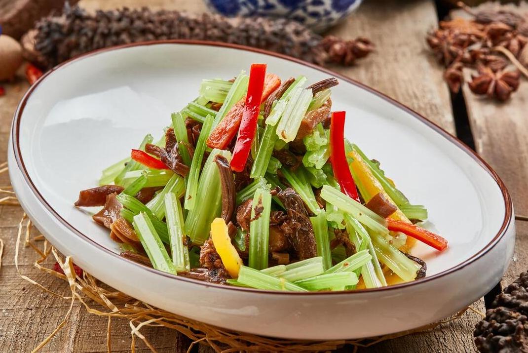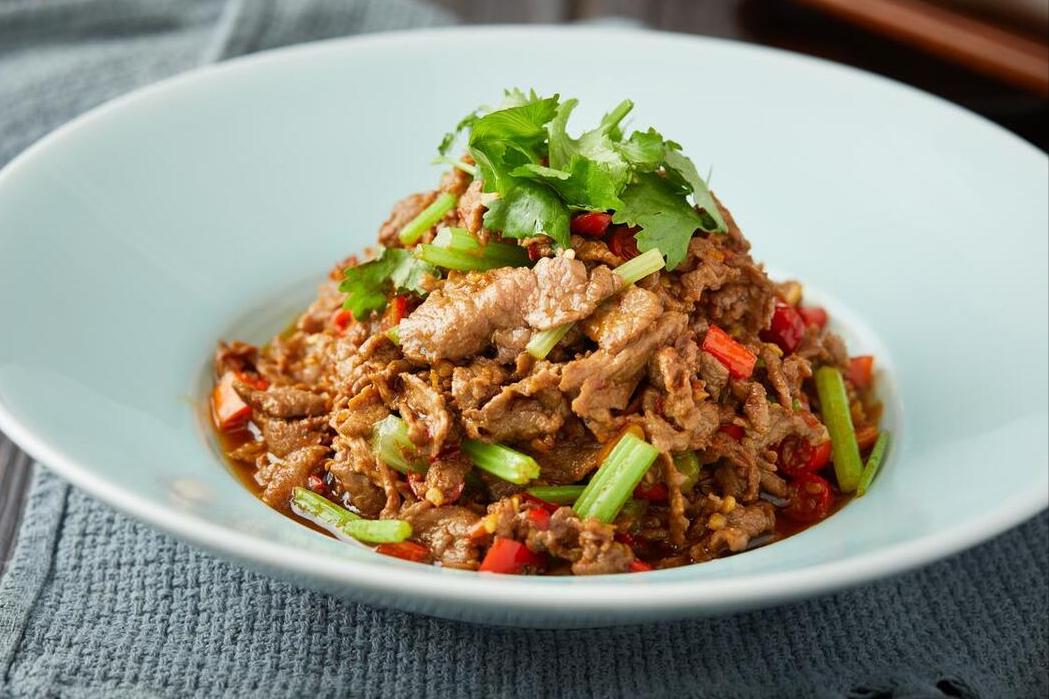 食材:芹菜、牛肉、香菜、蔥薑蒜、小米椒、鹽、雞精、白糖、白胡椒粉、生抽、蠔油、料酒、植物油