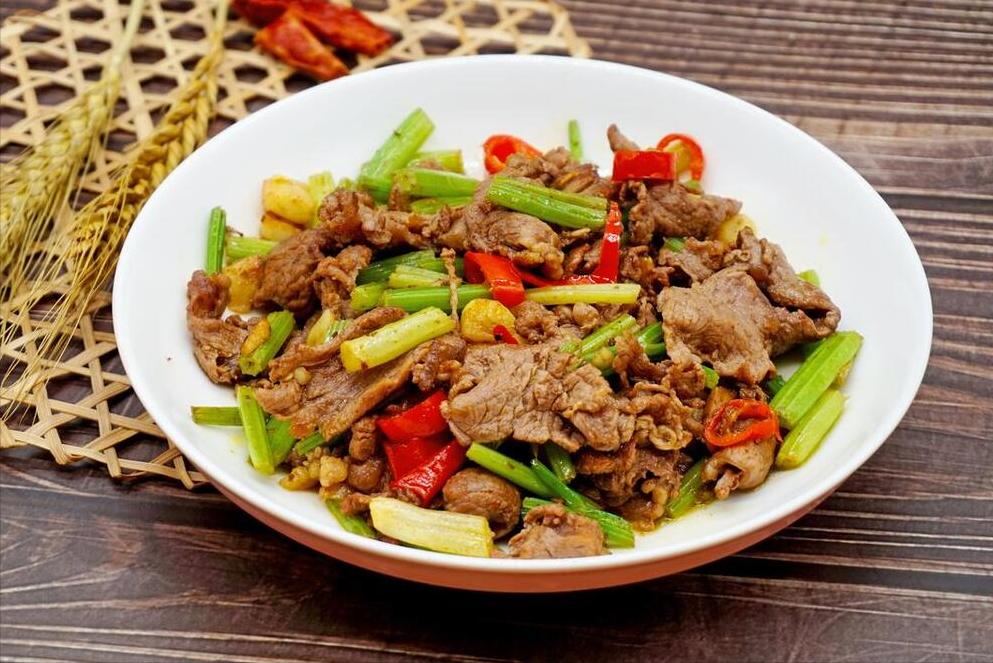 2、鍋子裏倒油,燒熱了之後下入牛肉翻炒,炒到斷生之後盛出來。接着往裏面倒入蔥薑蒜爆香,然後下入芹菜翻炒,炒到斷生後重新倒入牛肉,來點鹽、雞精、白糖、生抽、蠔油調味,炒的差不多了之後,加入香菜和小米椒,炒勻後即可出鍋。