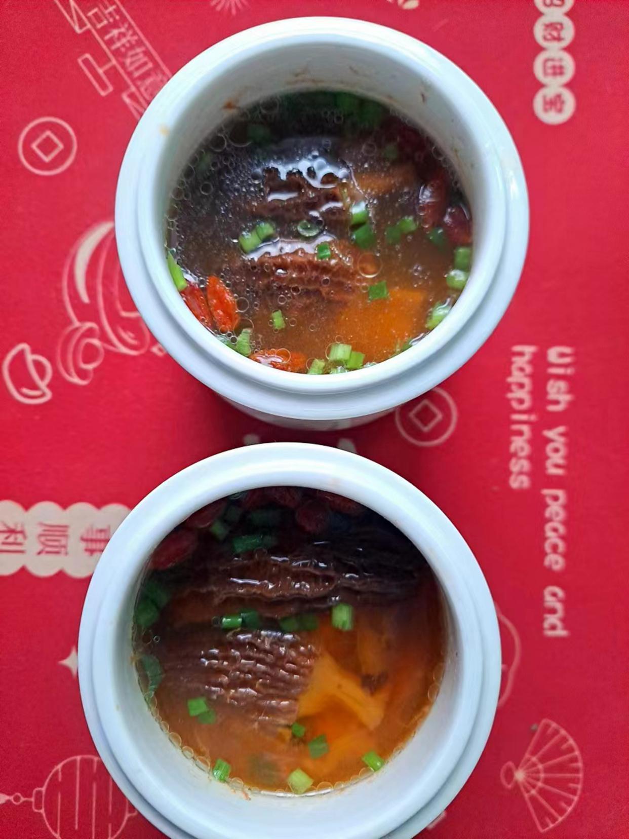秋天少不了貼秋膘,表弟還特意燉了他老婆愛喝的羊肚菌瘦肉湯,加了枸杞和香蔥的點綴,營養好喝又好看。不得不說,表弟對他老婆,還是很貼心的。
