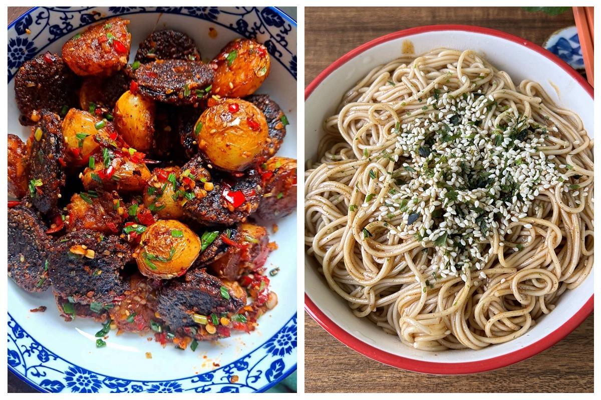 第3天表弟做的是香煎血腸和土豆,雖然是素菜,但真的看着就覺得特別好喫。表弟老婆做的是拌麪,不知道是什麼口味的,上面撒了一些海苔和白芝麻,感覺不是很有食慾。