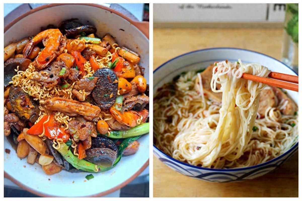 第1天表弟做的是麻辣香鍋,食材很豐富。可以看到有大蝦、藕節、湖南的血腸、青菜、火鍋面等等,看着就特別好喫的樣子。而表弟老婆做的是一碗加了午餐肉的竹升面,總體來說有點清淡。