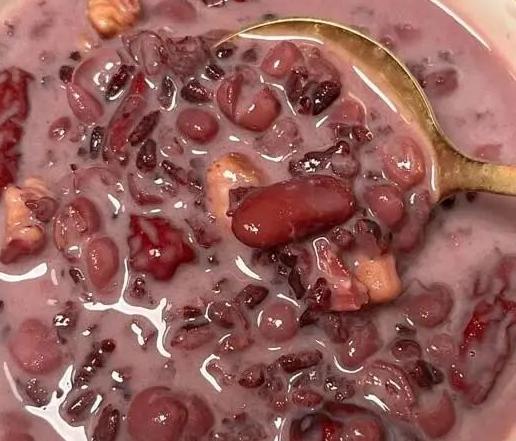 - 鍋裏放入泡好的紅豆、黑米、紅棗,再加入適量水,煮粥 1 小時。關火後,倒入牛奶,攪拌均勻,根據個人口味,加入適量紅糖調味。