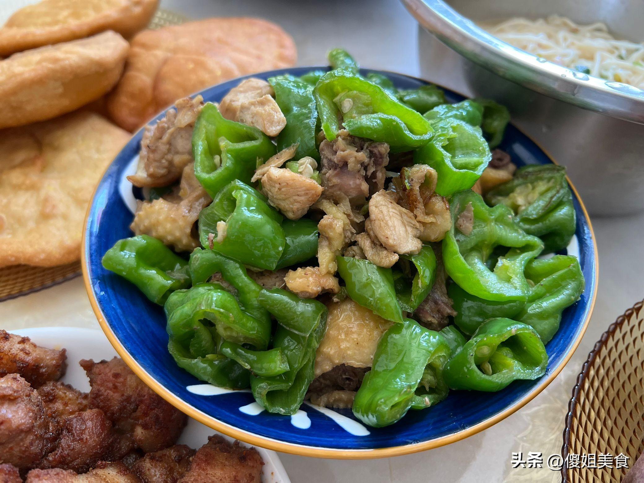 青椒炒肉也是我家的常備菜。五花肉切薄片,青椒切圈備用。先將五花肉片入鍋煸炒至出油,再加入青椒圈一起炒熟,最後調入鹽和醬油即可。這道菜簡單快手,青椒脆嫩,五花肉香而不膩,是下飯的好選擇。