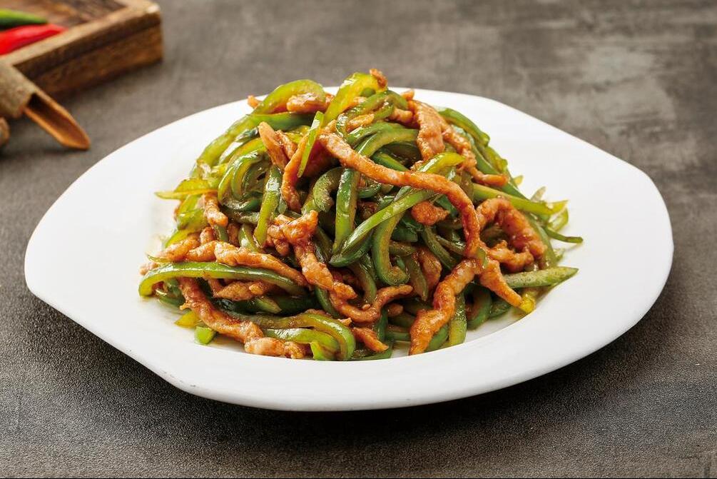 用到:青辣椒、豬肉、生薑、大蒜、鹽、雞精、白胡椒粉、澱粉、料酒、生抽、老抽