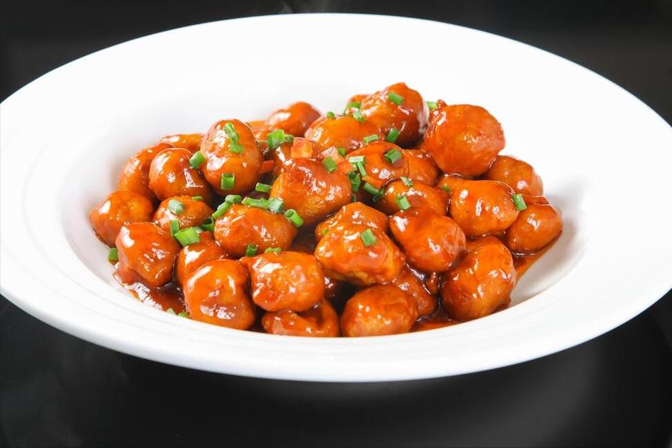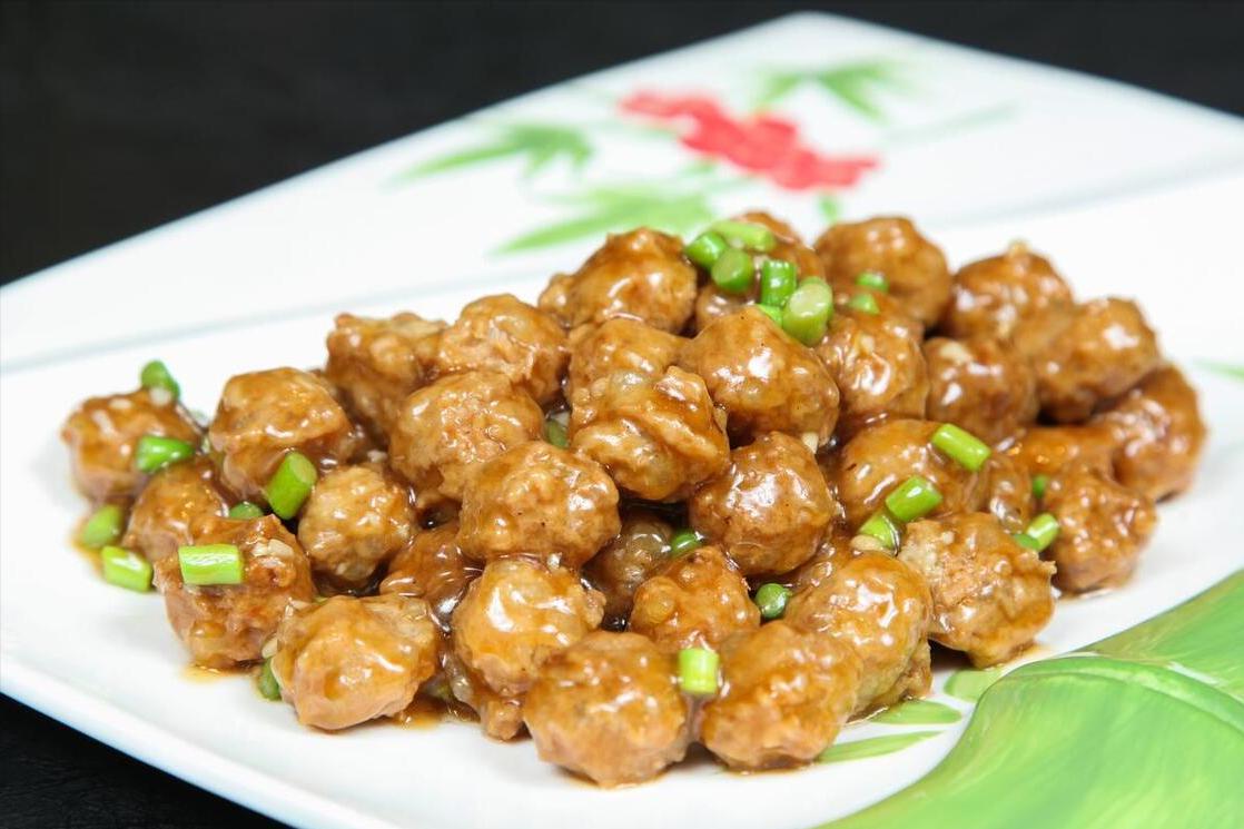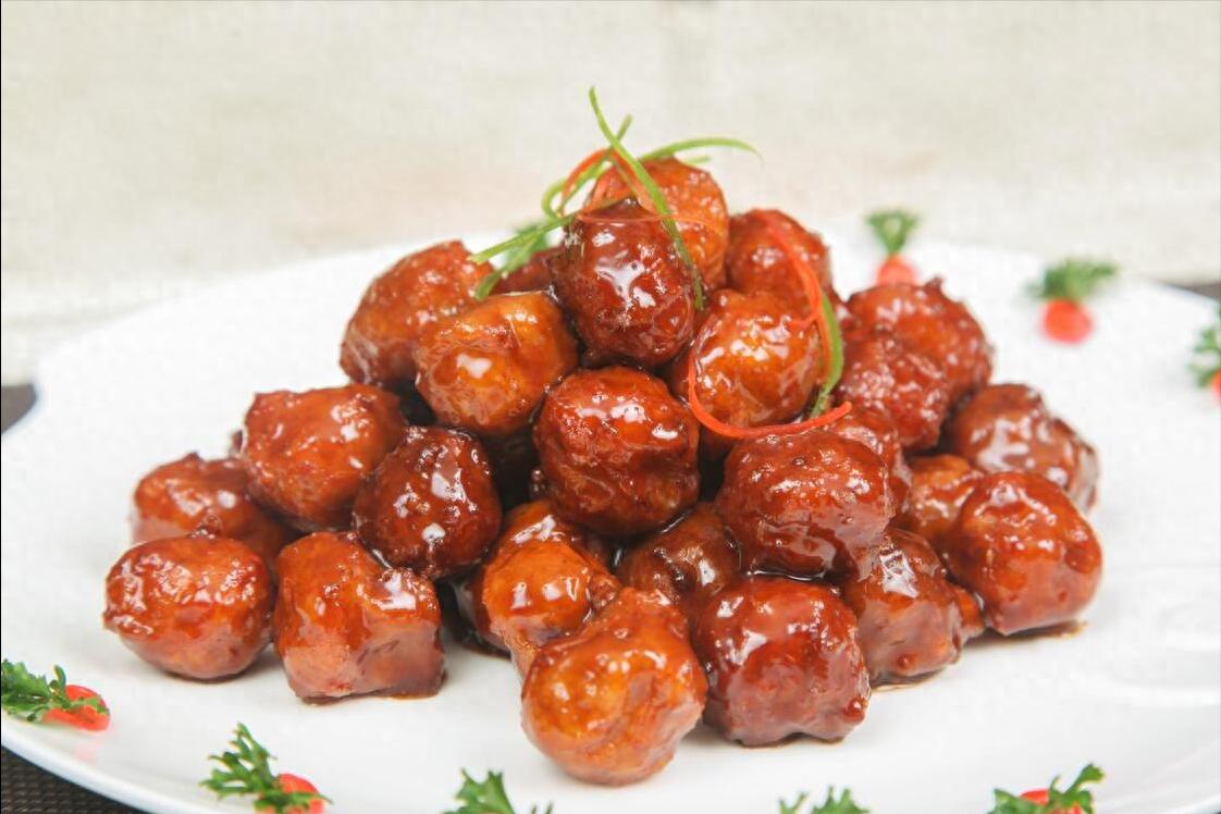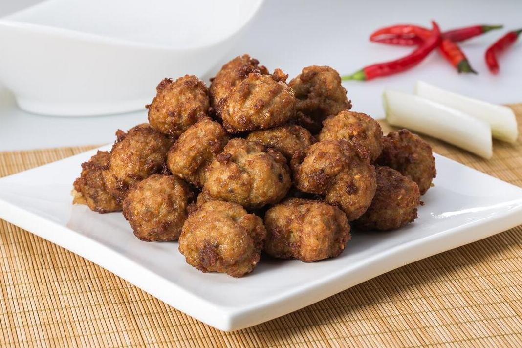 4、拌勻以後的肉餡,將其分成數個劑子,每一個都團成圓滾滾的丸子,接下來往鍋內多來點油,燒熱後下入肉丸子開始炸,小火慢炸直至炸到金黃以後就可以撈出來了,隨後復炸一次,撈出來備用。