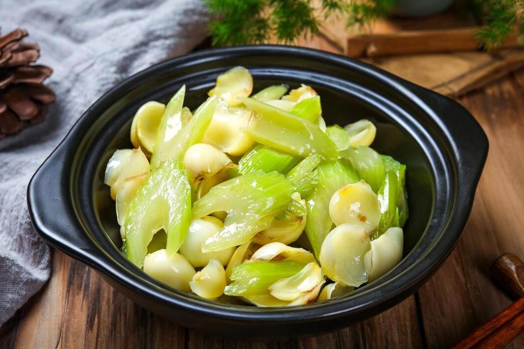 2、鍋內倒油燒熱,爆香蒜末後,倒入木耳翻炒,炒製片刻後再把西芹、百合倒進去,順便加上鹽和雞精調味,翻炒至斷生以後,最後淋入少許水澱粉,炒到湯汁濃稠以後,就可以關火出鍋了。