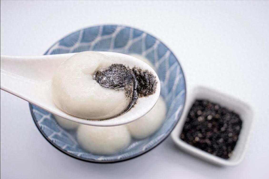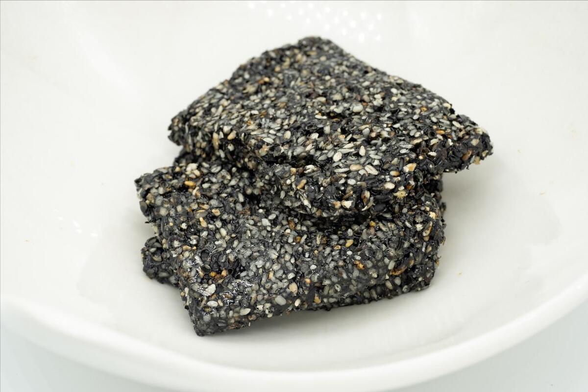 準備:黑芝麻200g、糯米粉180g、清水、冰糖