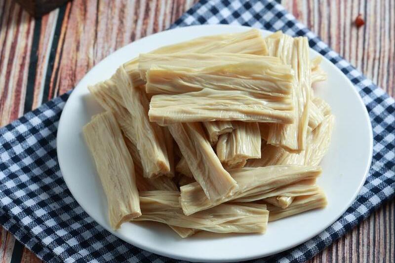 用涼水泡,用開水泡都是錯誤的,泡出來要麼有硬芯,要麼發爛導致口感很差。實際上在泡腐竹的過程中,需要記好2個要點,這樣泡出來更柔軟更勁道,而且還很省時,後續無論腐竹怎麼烹飪都好喫。