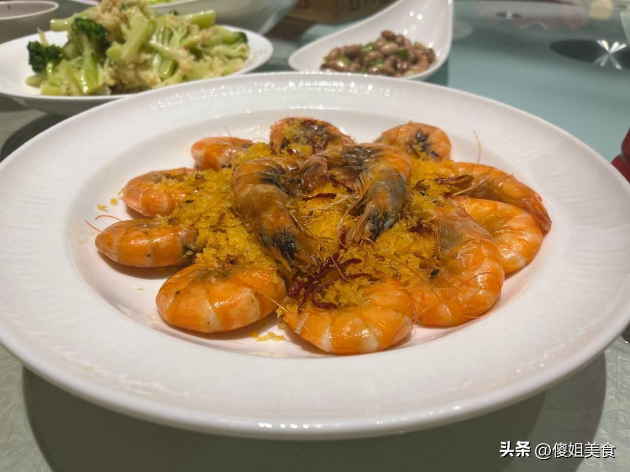 這個大蝦看上去就很有食慾,飯店喫飯就是不實惠,一盤裏面也就12只大蝦,每個人都合不上2個大蝦,一人喫一個還沒解饞就喫完了。不過這個芥末大蝦的確很好喫,比油燜大蝦好喫多了。