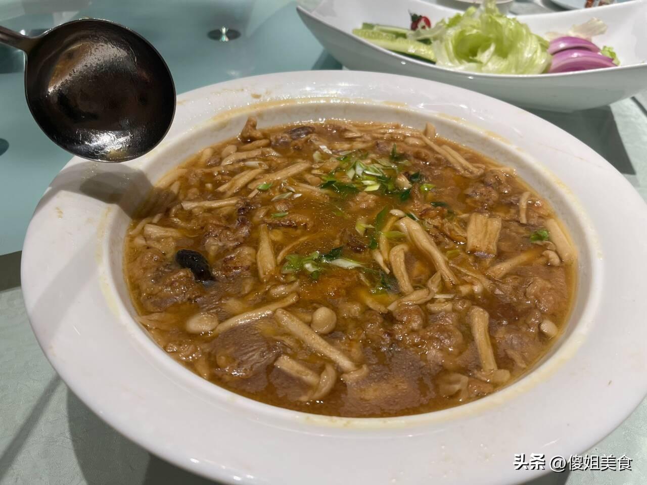 這道下飯菜很受歡迎,裏面放了黃燜雞、小蘑菇燉在一起的,喫完裏面的飯菜後,還能喝湯,很實惠。黃燜雞這樣燉一燉不油膩,喫起來還很香。