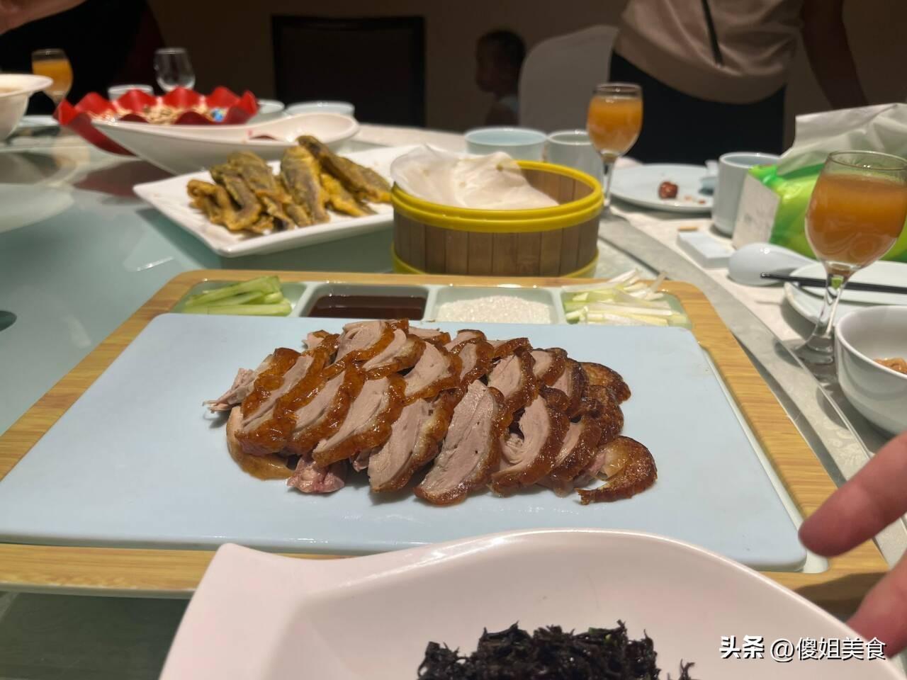 北京烤鴨是這家店的特色菜,也是必喫的,這一份要88元,都是現烤現切的,卷在餅裏,放點特製的甜麪醬,夾上蔥絲、黃瓜絲捲起來,一口吃下去滿口留香,一點都不油膩,太香了。