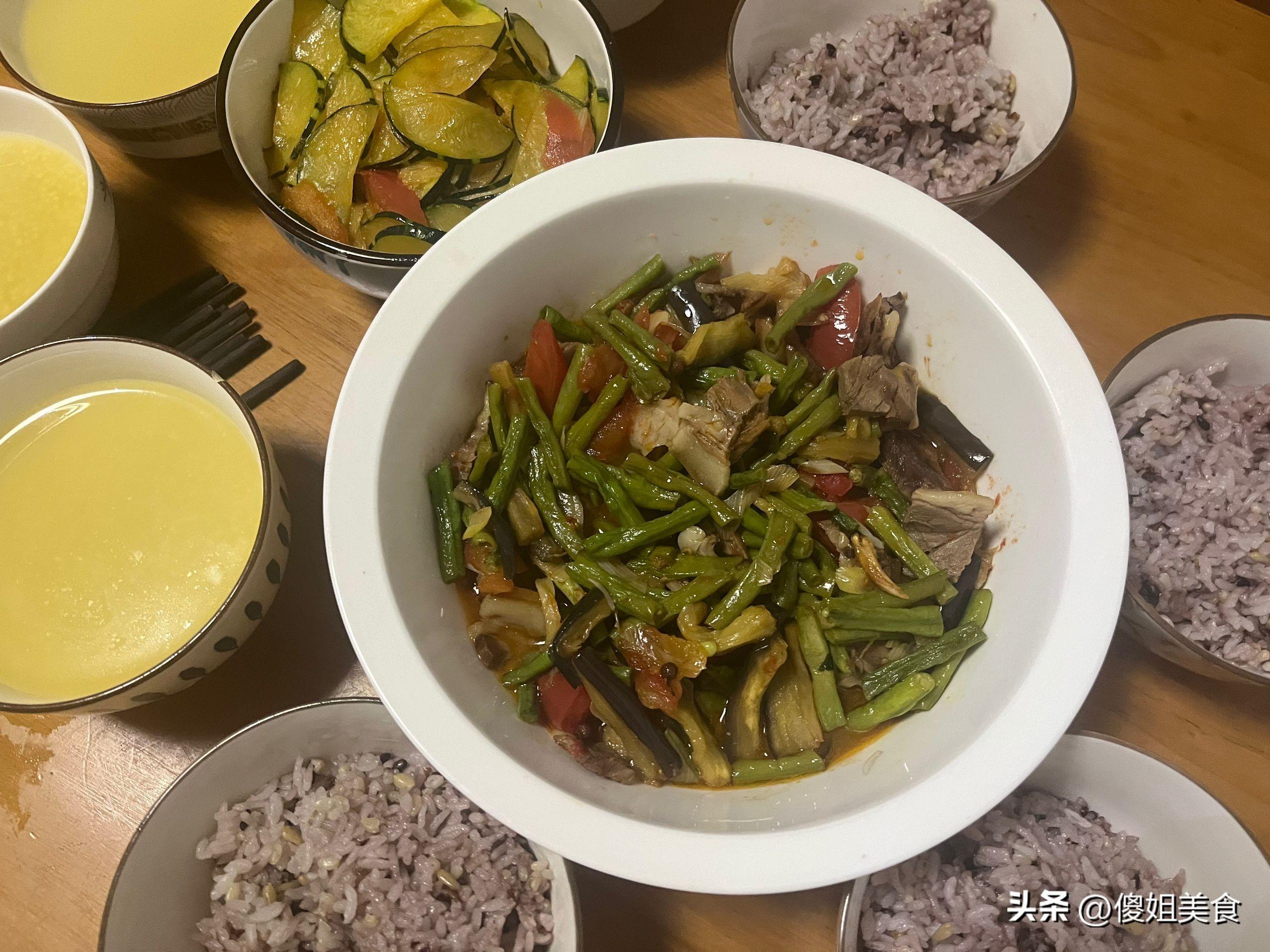 這幾天出去找知了猴給我們一家人帶來了很多快樂,特別是孩子們很開心,貌似找回了我們小時候的像樣。老公每天忙於工作,孩子們忙於學習,而我忙於生活中的瑣事,家裏裏裏外外都是我一個人。最近天熱都沒有胃口,爲了讓家人有胃口,我每天都會做一些很豐富的飯菜。就拿今天的午飯來說吧,有菜、有肉、悠唐有主食,很普通又家常的飯菜,都說好喫。曬了下朋友圈也火了:大鍋燉菜,看着就好喫!下面把我家的午飯飯分享給大家,是不是也看餓了?
