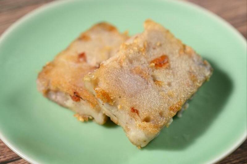 4、接下來我們將油紙從烤盤中取出來,放入鍋中開始蒸,水開後保持大火繼續蒸上25分鐘的時間,就完全熟了,到時間後取出來切塊開喫即可。當然了,也可以準備好平底鍋,往裏面刷一層薄薄的油,然後把切好的芋頭糕放進去煎一下,煎到兩面金黃,賣相更漂亮,喫起來也更美味。