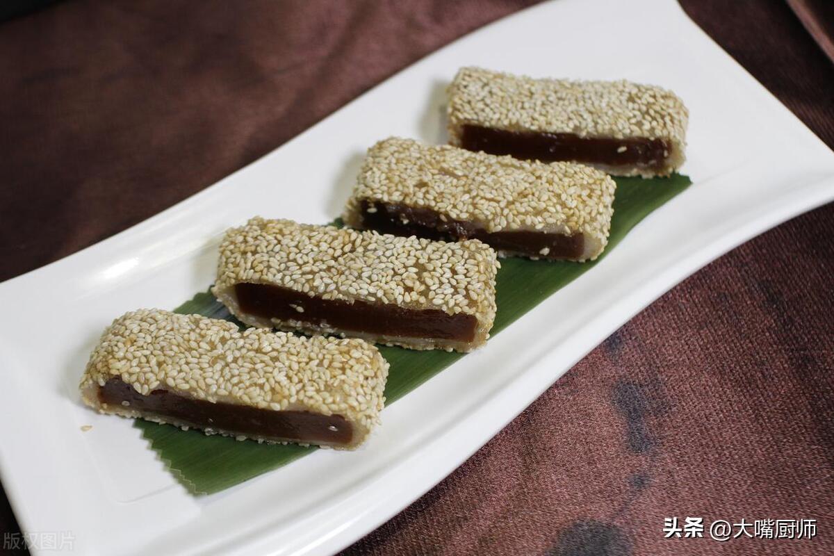5、切塊享用:將冷藏好的芝麻糕取出,根據個人喜好切成塊狀或片狀即可食用。