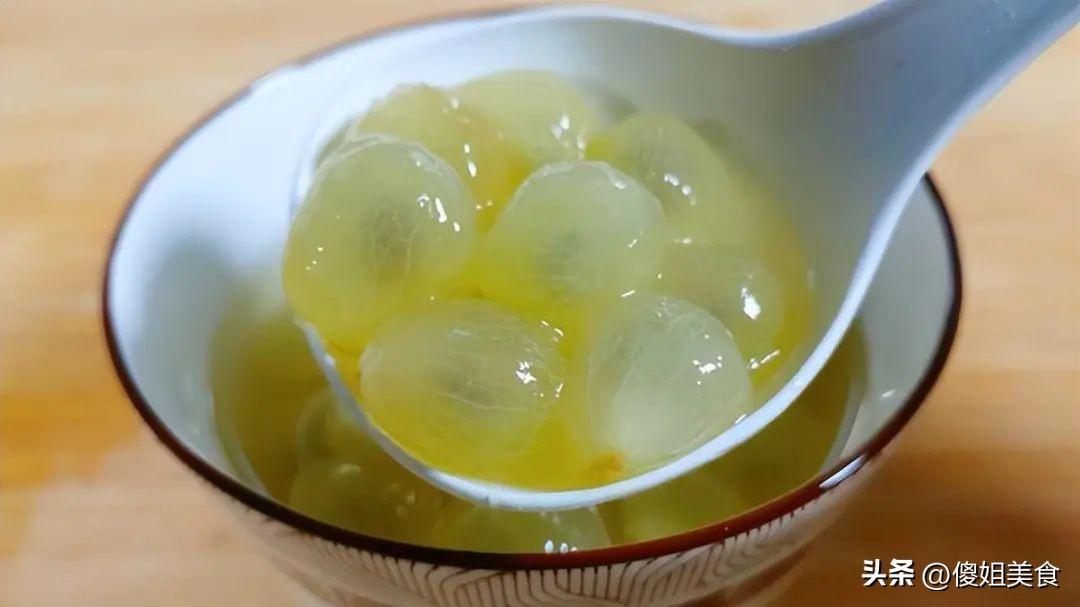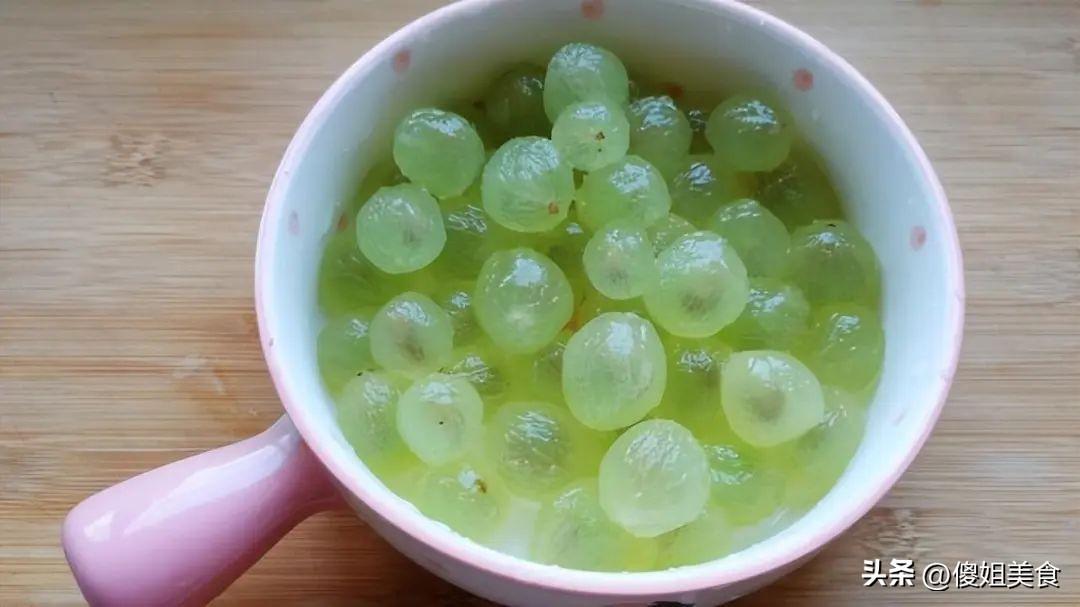 煮葡萄:將瀝乾的葡萄放入煮好的糖水中,繼續用小火煮5-10分鐘,直到葡萄表皮開始變軟,顏色變深。煮的時候要注意火候,不要煮得太久,避免葡萄變得過於軟爛,影響口感。