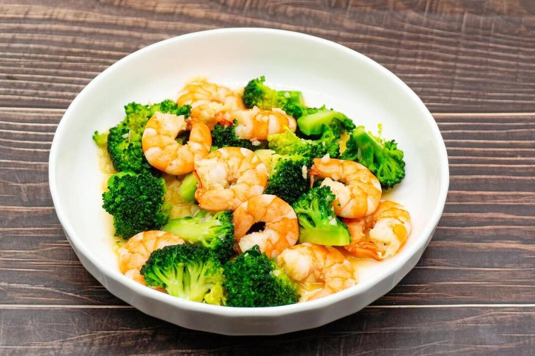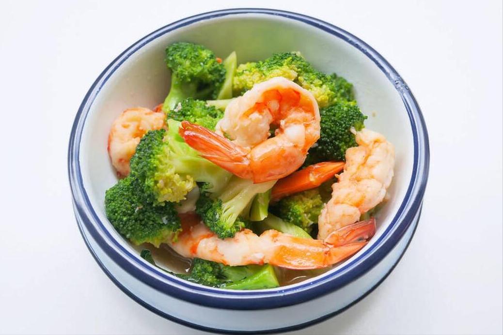 蝦仁中加上鹽、白胡椒粉、生抽、料酒,抓勻醃製15分鐘,再將胡蘿蔔、西蘭花洗淨。鍋子裏倒水,燒開下入西蘭花焯水,撈出來備用。起油鍋,爆香蒜末後倒入蝦仁翻炒至變色,然後接着加上西蘭花、胡蘿蔔翻炒,順便用鹽、雞精、蠔油調味,炒勻後出鍋。