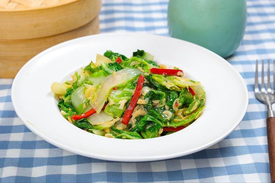 用到:蝦皮、小白菜、大蒜、鹽、味精