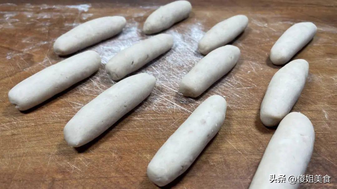 製作芋圓:將麪糰搓成長條,再切成小塊,搓成圓形的芋圓。將做好的芋圓放入沸水中煮,直到芋圓浮起即可撈出瀝乾。