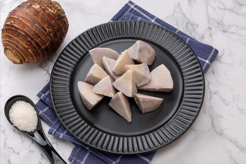 1、準備幾個小芋頭,將其放在水中進行清洗,清洗乾淨後再把外皮給削掉,削皮的時候最好戴上手套,不然上面的黏液容易讓手變得很癢。
