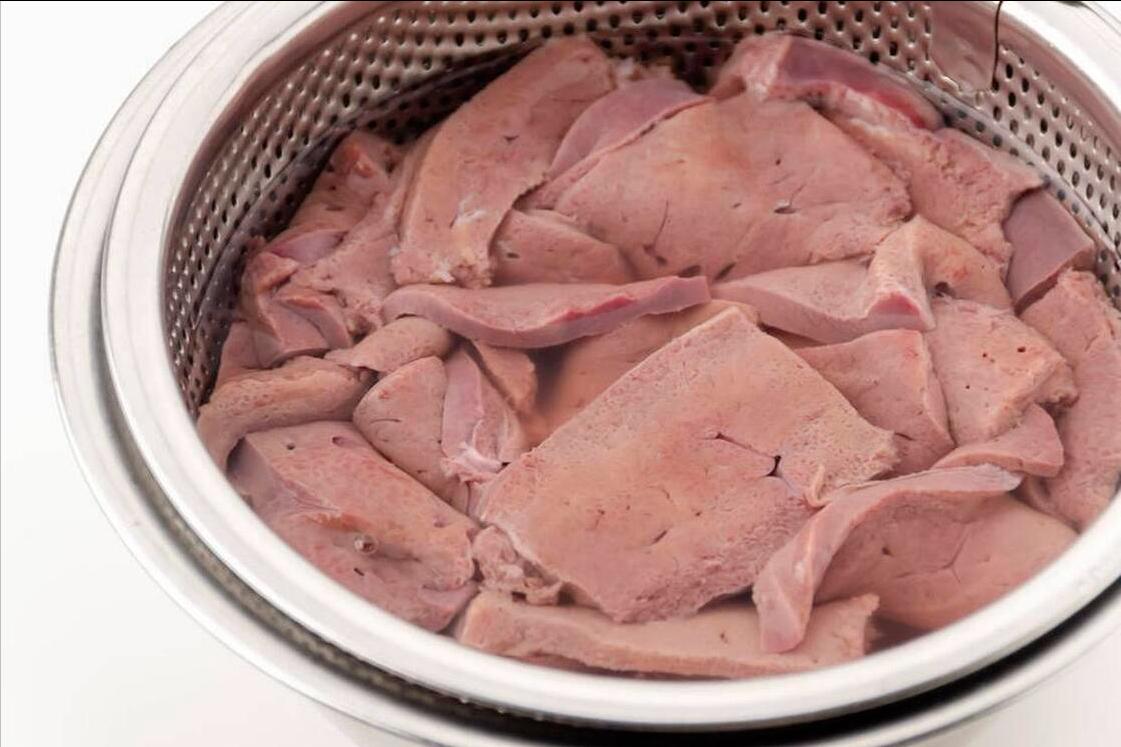 2、豬肝泡出來血水,大家想想看,腥味就可以減少很多,畢竟豬肝的腥味都藏在裏面,用水泡去腥效果會非常好,這就是第1個重要步驟。隨後,換一盆清水,把豬肝清洗一下,再換一盆清水,洗上2、3遍,把水洗到清澈就可以了。
