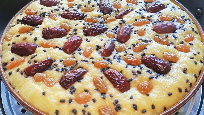 2、米漿倒入大碗,放入除蔓越莓幹外的所有食材拌成麪糊。模具刷油,把麪糊倒進去,抹平表面,等待發酵。發到 2 倍大,放蔓越莓幹。