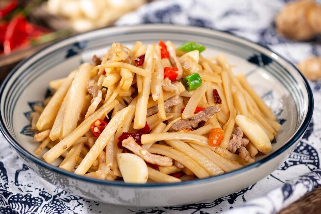 蓮藕洗淨後削皮,然後切絲,木耳泡好洗淨後,也切成絲,胡蘿蔔同樣切絲,蔥花切好。往鍋子裏倒油,待其燒熱後下入蓮藕、木耳、胡蘿蔔,一起進行翻炒,直至炒熟後,用食鹽、雞精、生抽進行調味,出鍋之前撒上蔥花就可以啦。