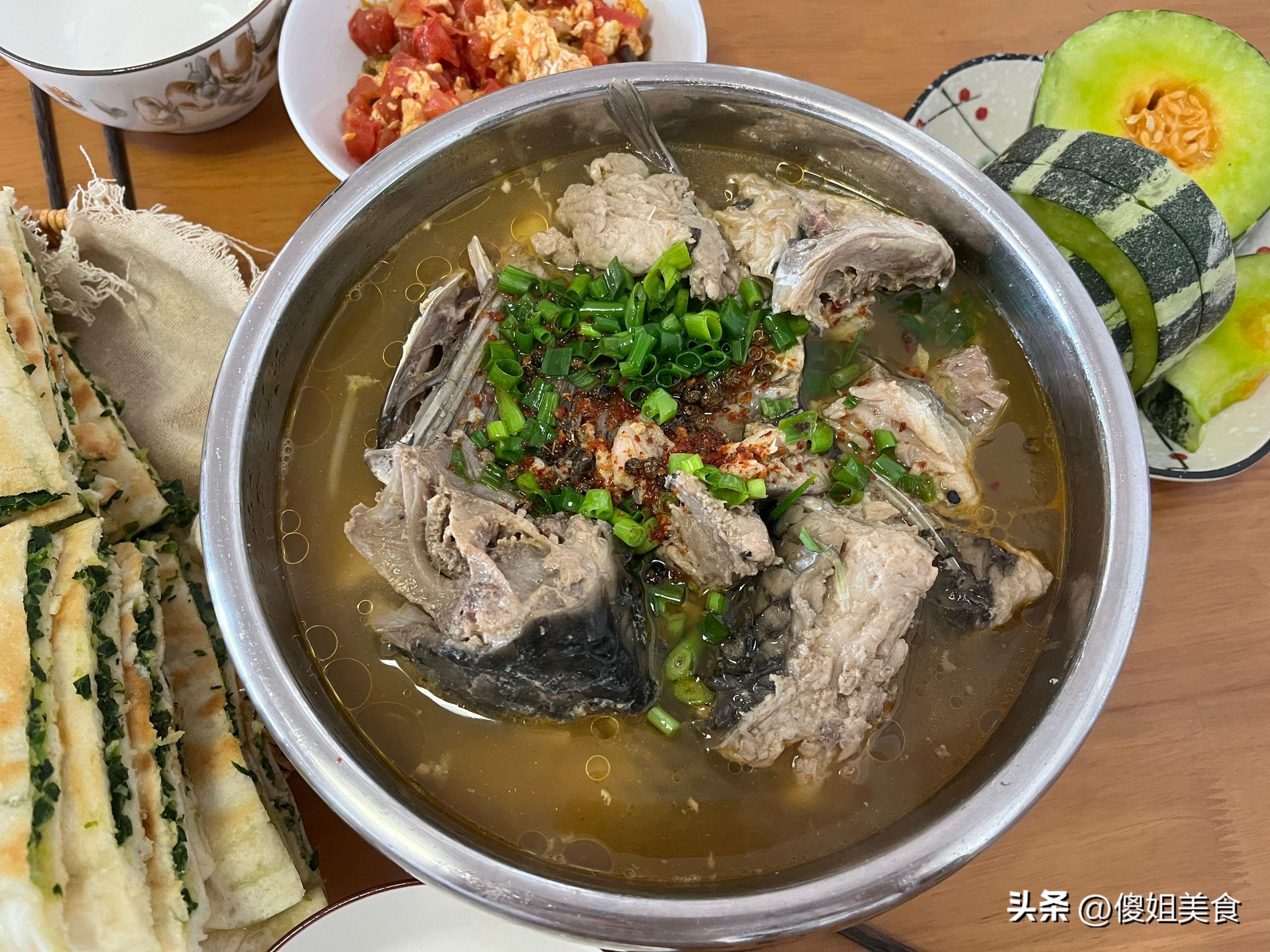 看俺兒子這狼吞虎嚥的樣子,我烙的餡餅就很好喫,還真沒少喫,喫了5、6塊,還喫了一些魚肉。飯後還來點水果,娘兩個的午餐豐富又營養,孩子喫着還健康。