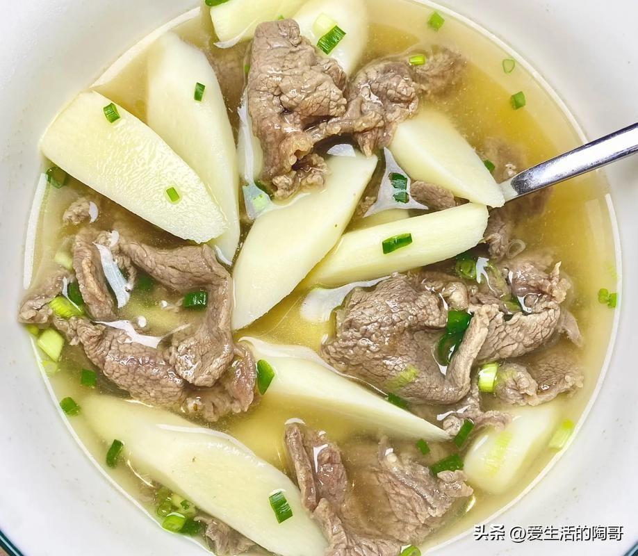 推薦喫法,山藥牛肉湯。牛肉是增強體質的好助手,切成薄片搭配山藥一做湯喝,牛肉很鮮嫩,山藥粉糯入味,湯水喝起來很滋潤的,非常大補。