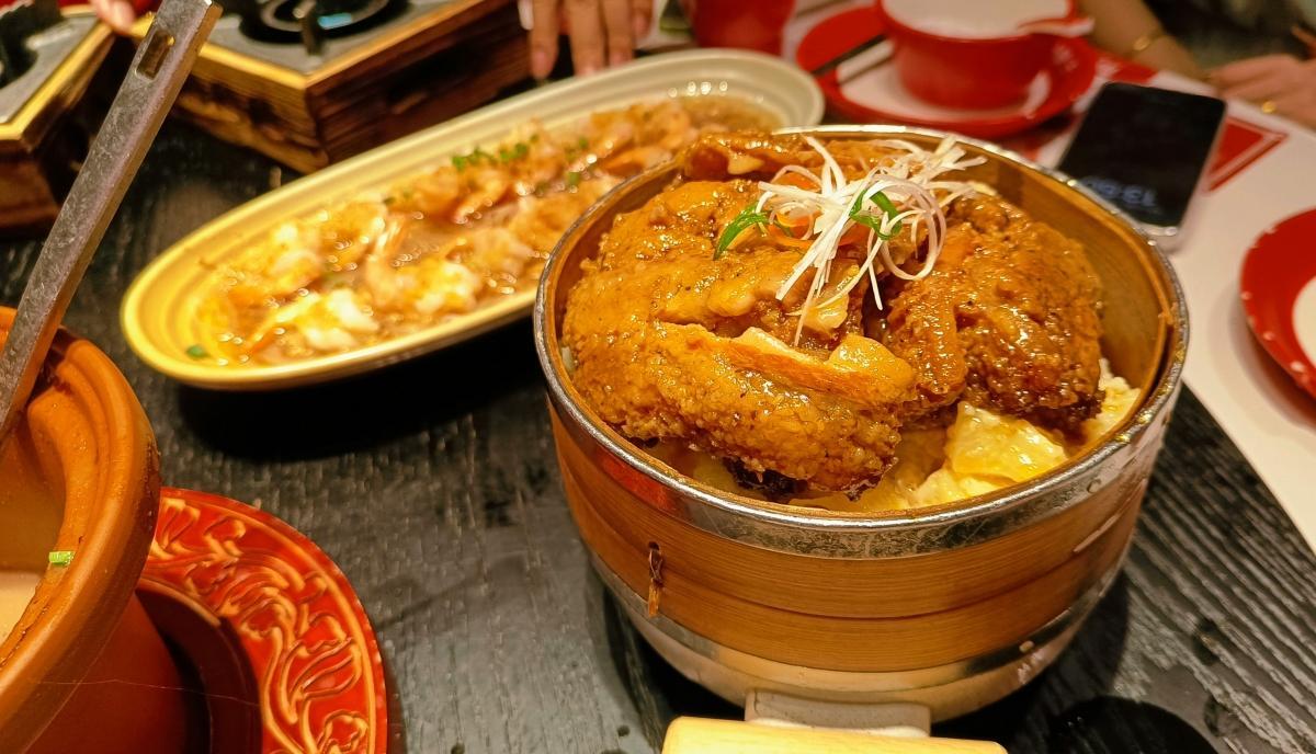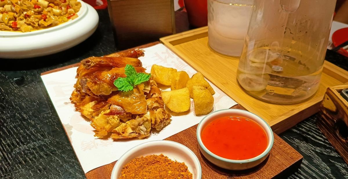 在我們北方有“無雞不成席”的說法,取“大吉大利”之美好寓意。姐姐愛喫雞,親家特意給她點了這道脆皮雞,色香味俱全,皮脆肉嫩,蘸着蘸料喫入味好喫,比喫烤鴨都過癮!