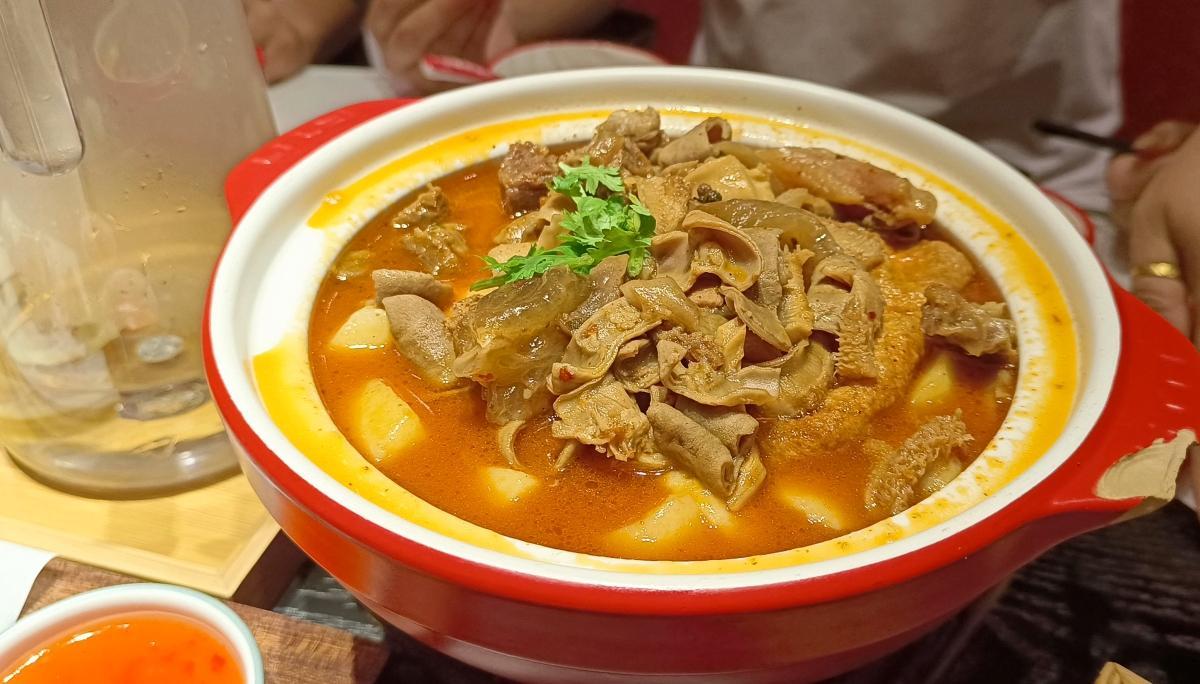 姐姐親家說到湖北一定要嚐嚐這牛三鮮,濃烈紅豔的湯汁中浸泡着的牛肉、牛筋和小土豆,對視覺和味蕾都有着濃烈的衝擊,讓人忍不住去品嚐,而且是隻要動了口就停不下來,簡直是好喫到爆!
