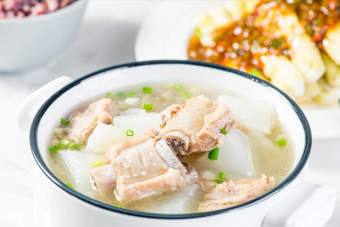 白蘿蔔洗淨切塊,排骨洗淨後下入鍋中,加上蔥姜、料酒焯水,然後撈出來備用。接下來準備一口鍋,將排骨、蔥姜加進去,添上適量的開水開始燉,大火燒開之後,小火繼續燉40分鐘,隨後再把白蘿蔔倒進去,繼續燉15分鐘後,加上枸杞、食鹽調味,出鍋開喝。