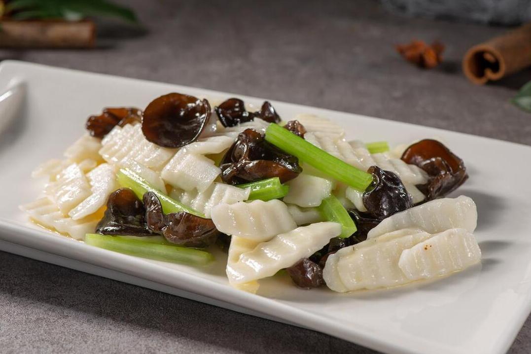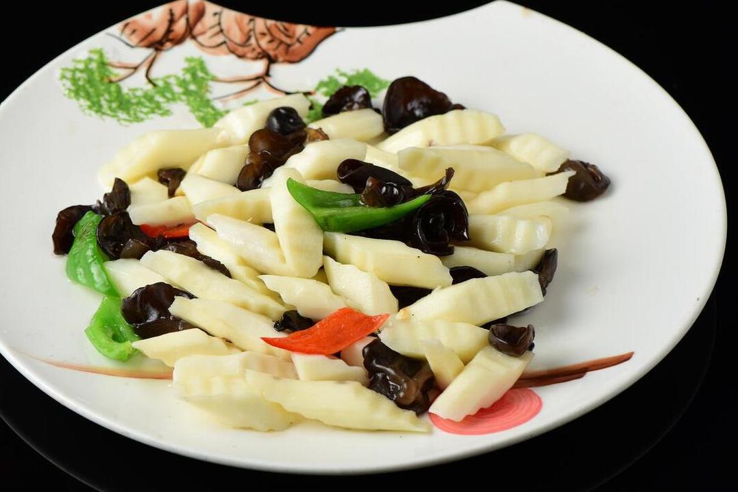 山藥削皮切塊,木耳泡發洗淨,青椒切塊,胡蘿蔔切片,蔥花和大蒜都切好。鍋內倒油,燒熱下入蔥蒜炒香,然後倒入山藥、木耳、胡蘿蔔翻炒,炒到斷生後來點鹽、雞精調味,最後加入青椒翻炒幾下,即可出鍋。