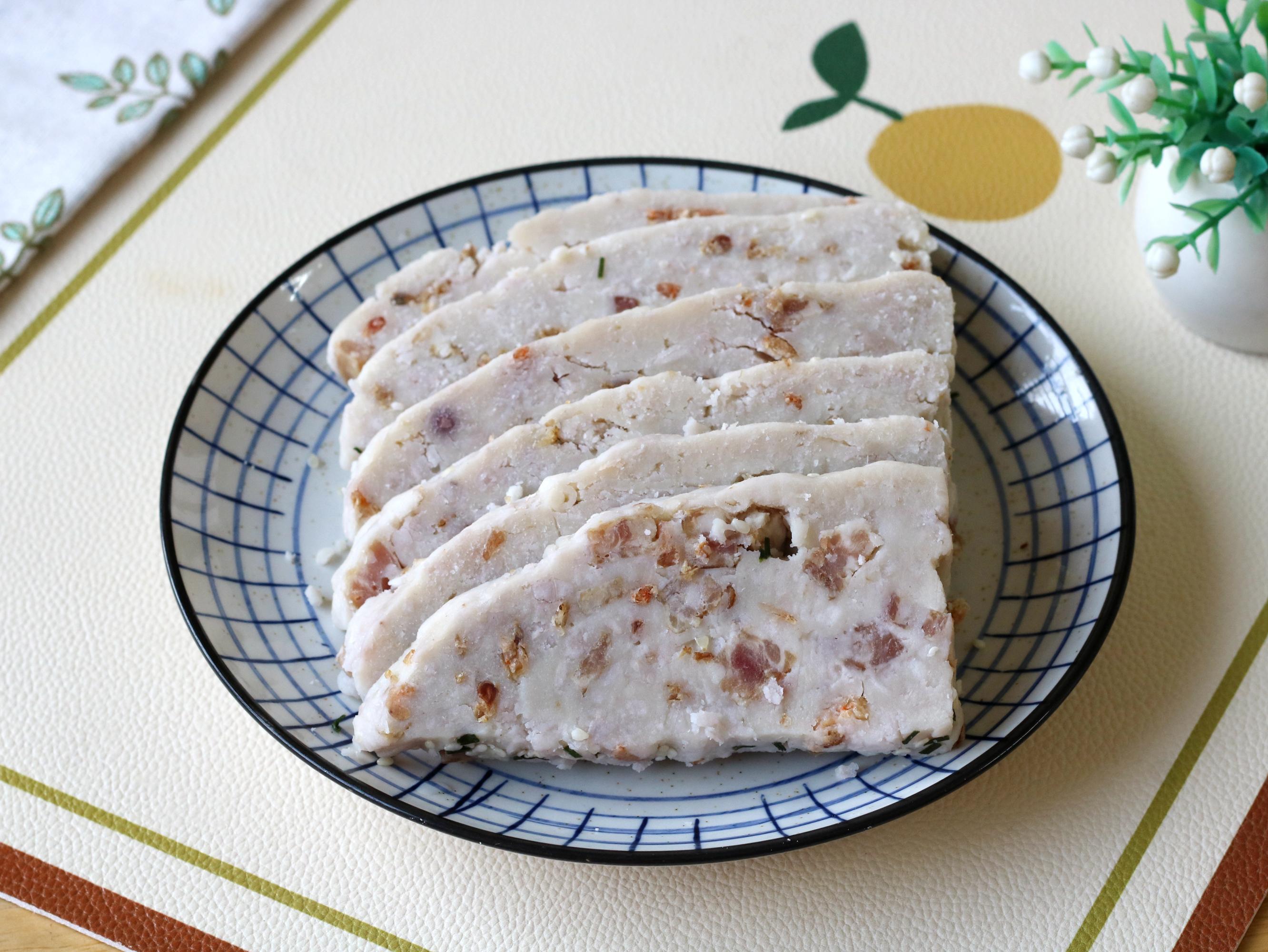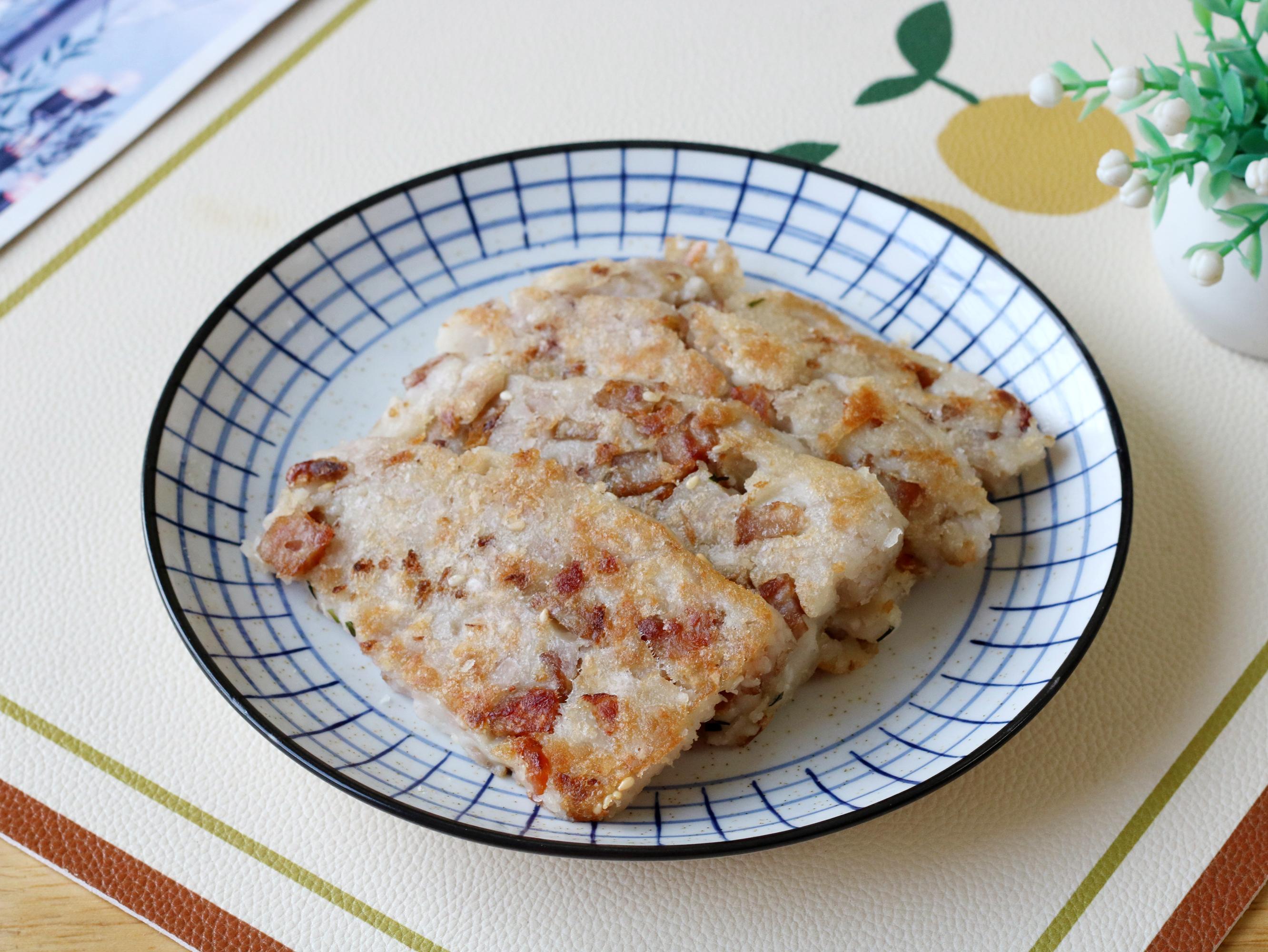 芋頭糕是一道廣式茶點,在廣東的茶樓裏經常能看到。芋頭糕是用廣式臘腸搭配芋頭絲炒到半熟,再和粘米粉混合蒸熟而成的,喫起來帶一點綿軟,還有臘腸的香甜和芋頭的清香,煎着喫更香。