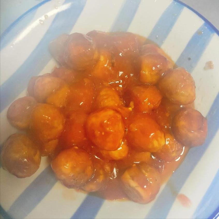 用到:鵪鶉蛋、番茄醬、白糖、醋、鹽、白芝麻