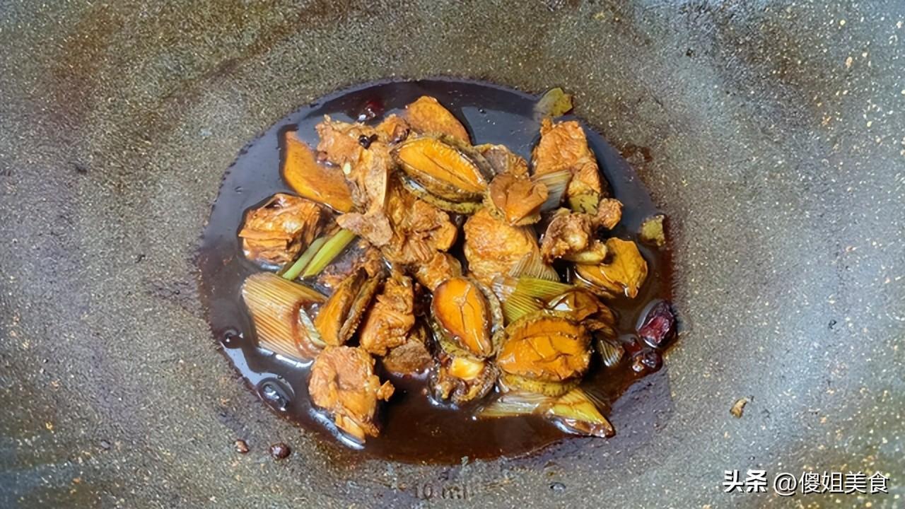 5、30分鐘後,加入處理好的鮑魚,再燉煮15分鐘,讓鮑魚的鮮味融入湯汁中。最後,根據個人口味加入鹽和胡椒粉調味,繼續燉煮5分鐘,至湯汁濃稠即可。