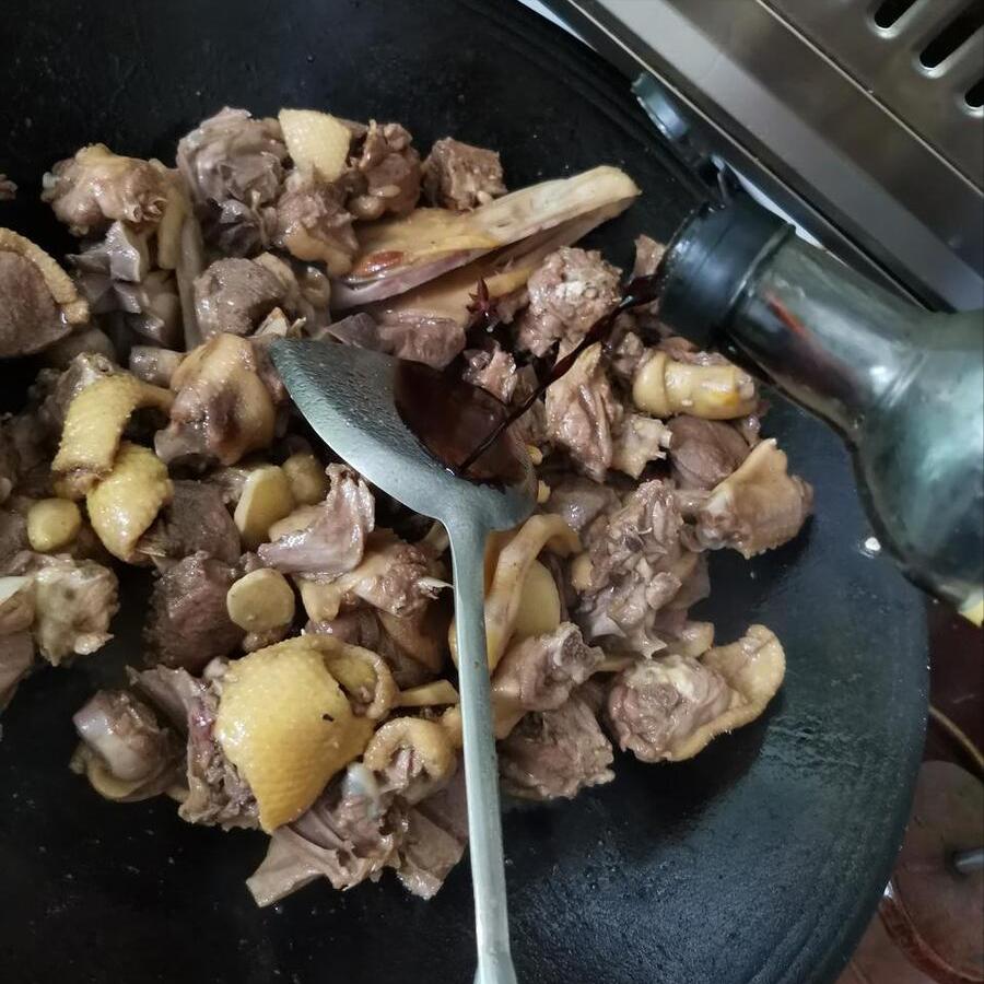 2、洗淨後的鴨子,控幹水分之後,放在一旁備用,順便將八角、桂皮等需要的配料準備好。隨後往鍋內倒上適量的食用油,把控幹水分的鴨肉倒進去翻炒,小火翻炒幾分鐘,直至把鴨肉裏面的水分炒幹爲止。