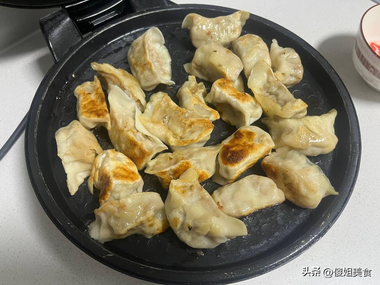 我們今天的早上的主食是煎餃子,餃子是昨天晚上兒子過生日的時候包的,特意多包了點,正好早晨煎一下,簡單省事,孩子們還愛喫。餃子是芹菜肉餡的,煎的時候不容易破,還有就是包好的餃子要把涼透,不要粘連在一起。電餅鐺底部塗抹少許的食用油就可以,油不要太多,不然太油膩。小火慢煎,把餃子煎到兩面金黃,喫一口嘎嘣脆,裏面的肉餡鮮嫩好喫,賊拉好喫。