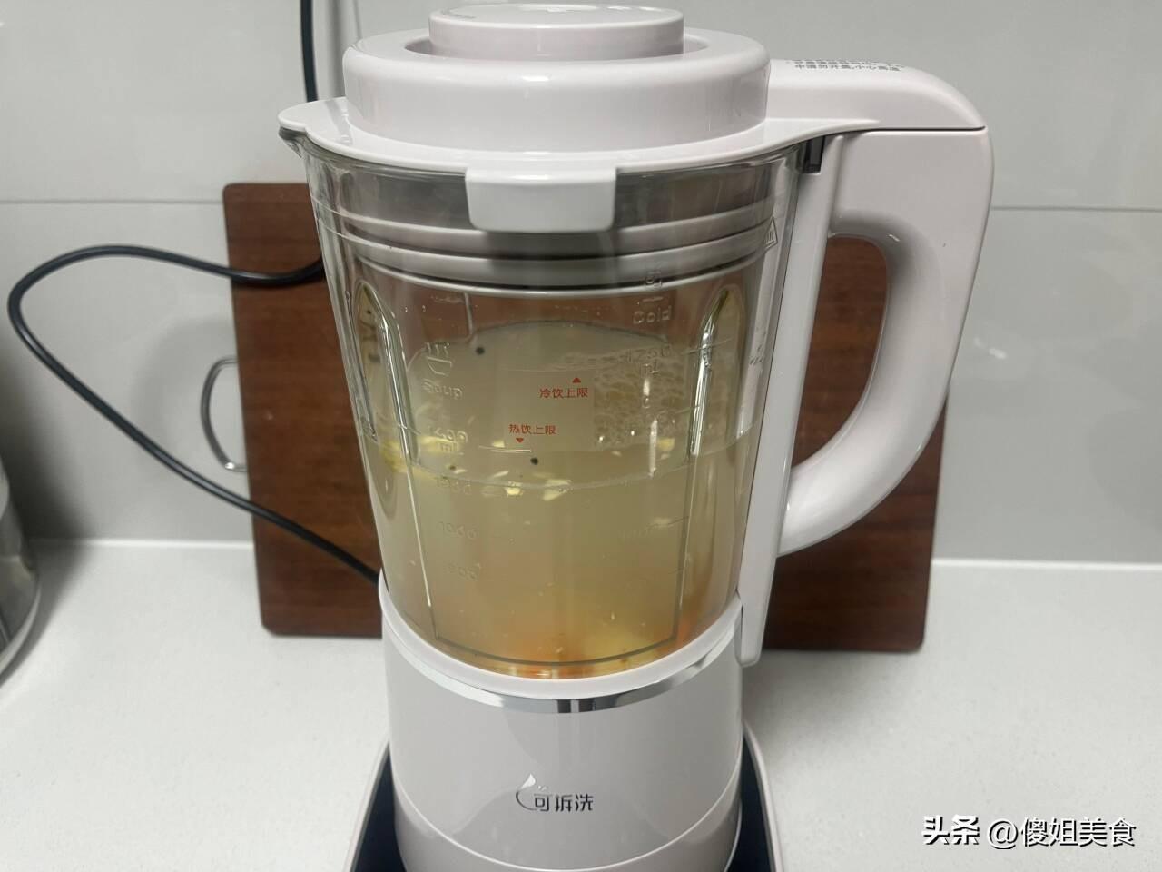 把準備好的食材放入豆漿機內,再往裏面倒入適量的純淨水,水量一定要根據食材的多少來放,還有就是水量不要過多,否則在運行的過程中會溢出來。準備好後按定時鍵,早上就可以自動工作,等醒來黑豆糊就做好了,簡單省事,也不用早起。
