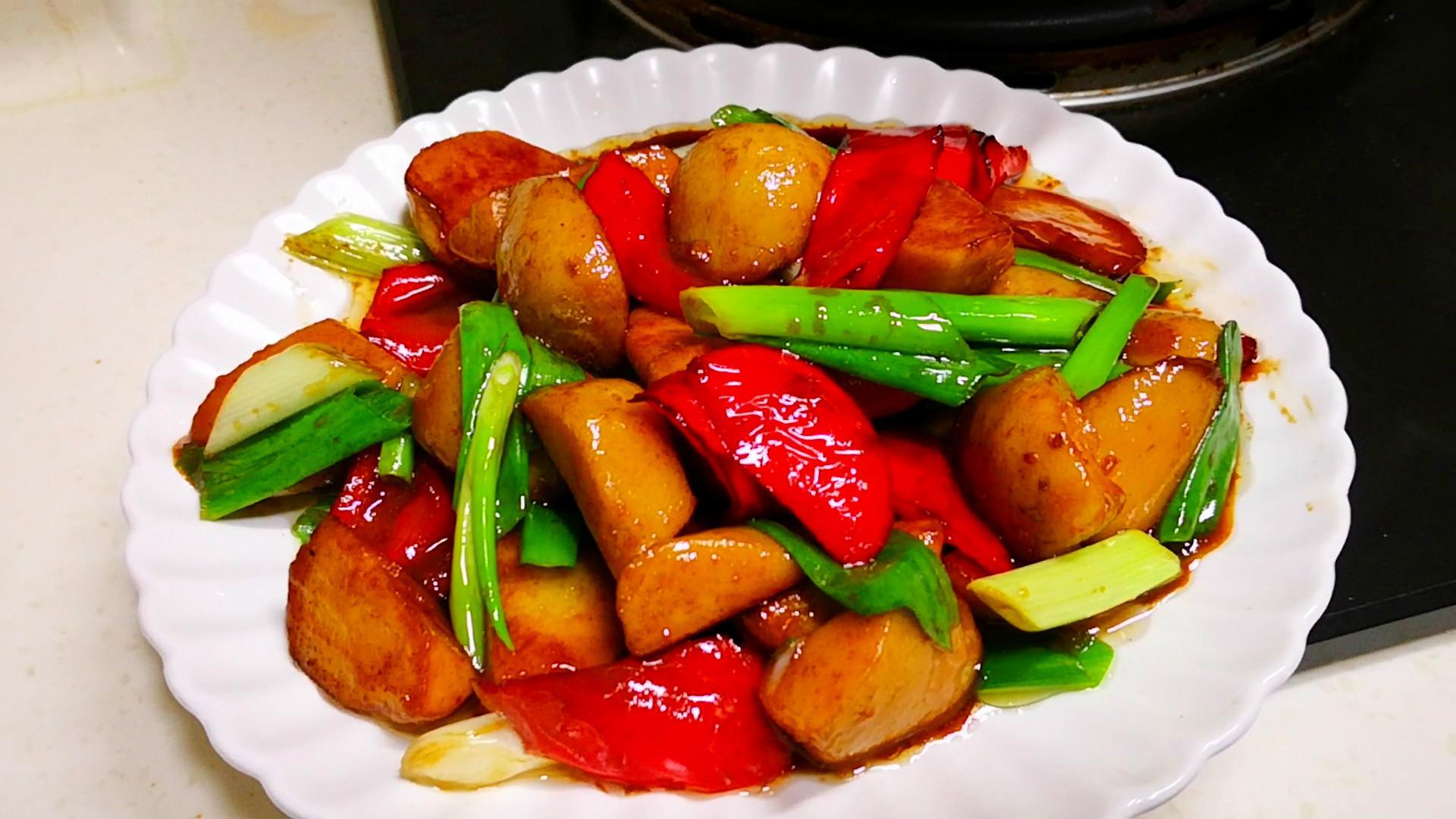一切準備就緒,起鍋加油,油溫五成熱時倒入紅辣椒進行煎制,煎至辣椒表皮呈虎皮狀時關火,盛出備用;接着倒入芋頭塊,煎至芋頭表面變得金黃時倒入之前調好的料汁,然後蓋上鍋蓋大火燜2分鐘撒上小蔥段,再次翻炒均勻後即可關火出鍋,美味即成!