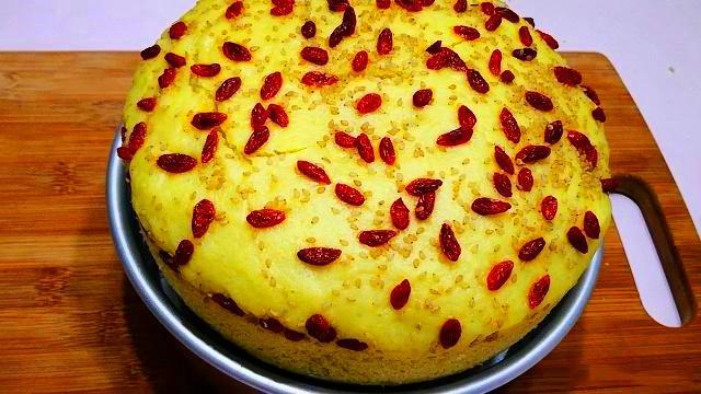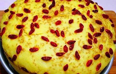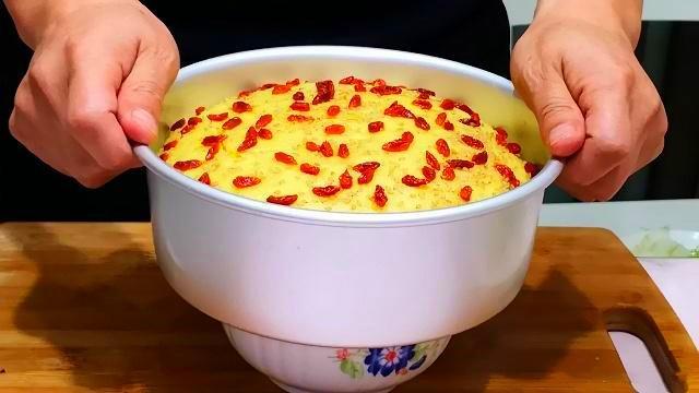 6.二次醒發好後,將其放到蒸鍋中,涼水上鍋開始蒸,水開後繼續蒸30分鐘左右關火,再燜3~5分鐘後即可開鍋取出。冷卻至不燙手後脫掉模具,像切蛋糕一樣切成小塊,便可以上桌享用了。