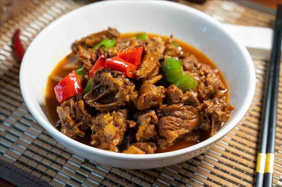 準備:雞肉、八角、蔥薑蒜、花椒、青椒、幹辣椒、鹽、味精、醬油、料酒、辣椒醬
