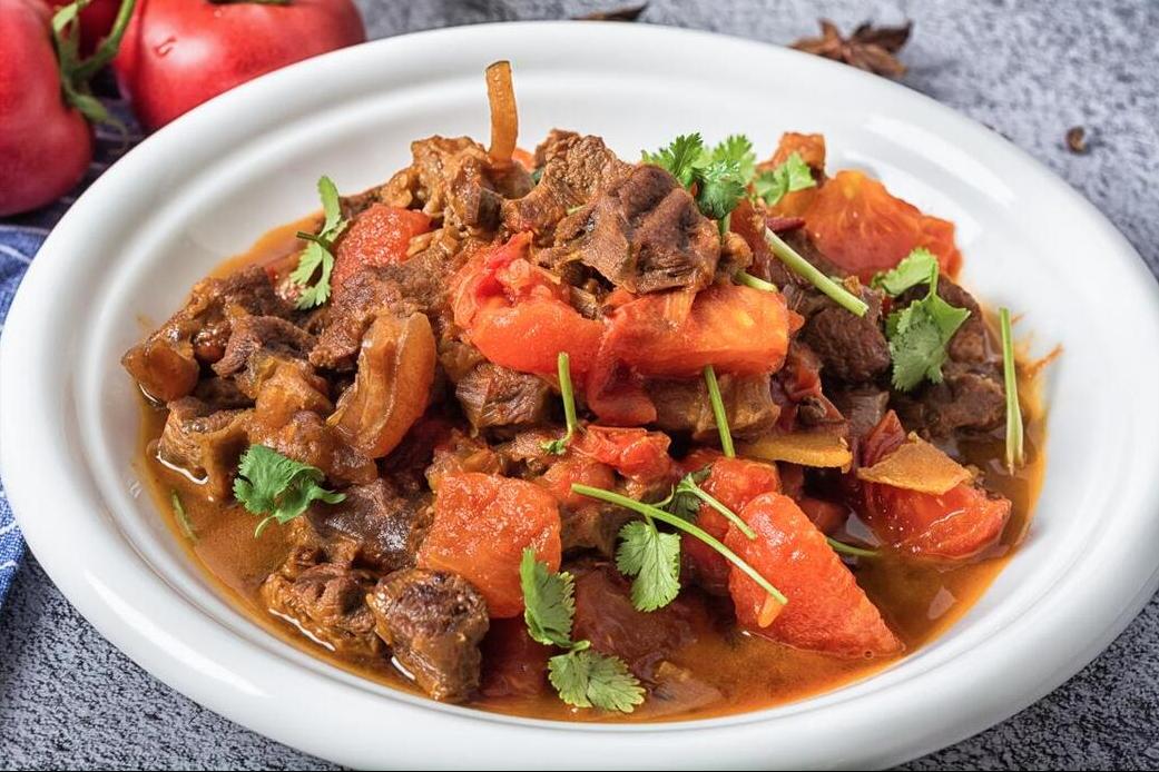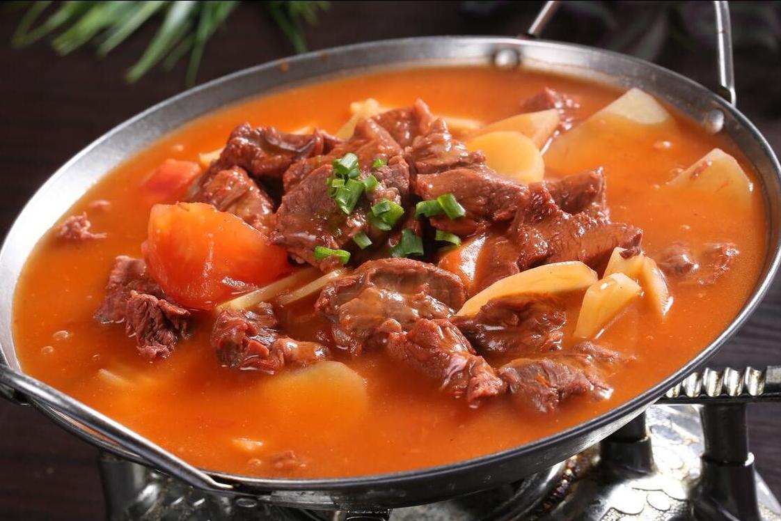 5、等到牛肉燉好後,下入西紅柿和土豆繼續燉20分鐘左右,直至將土豆燉到軟爛爲止。。最後把鹽和雞精倒在鍋子裏進行調味,將其充分攪拌均勻,然後再開大火將湯汁收一下,把火關掉,出鍋開喫!