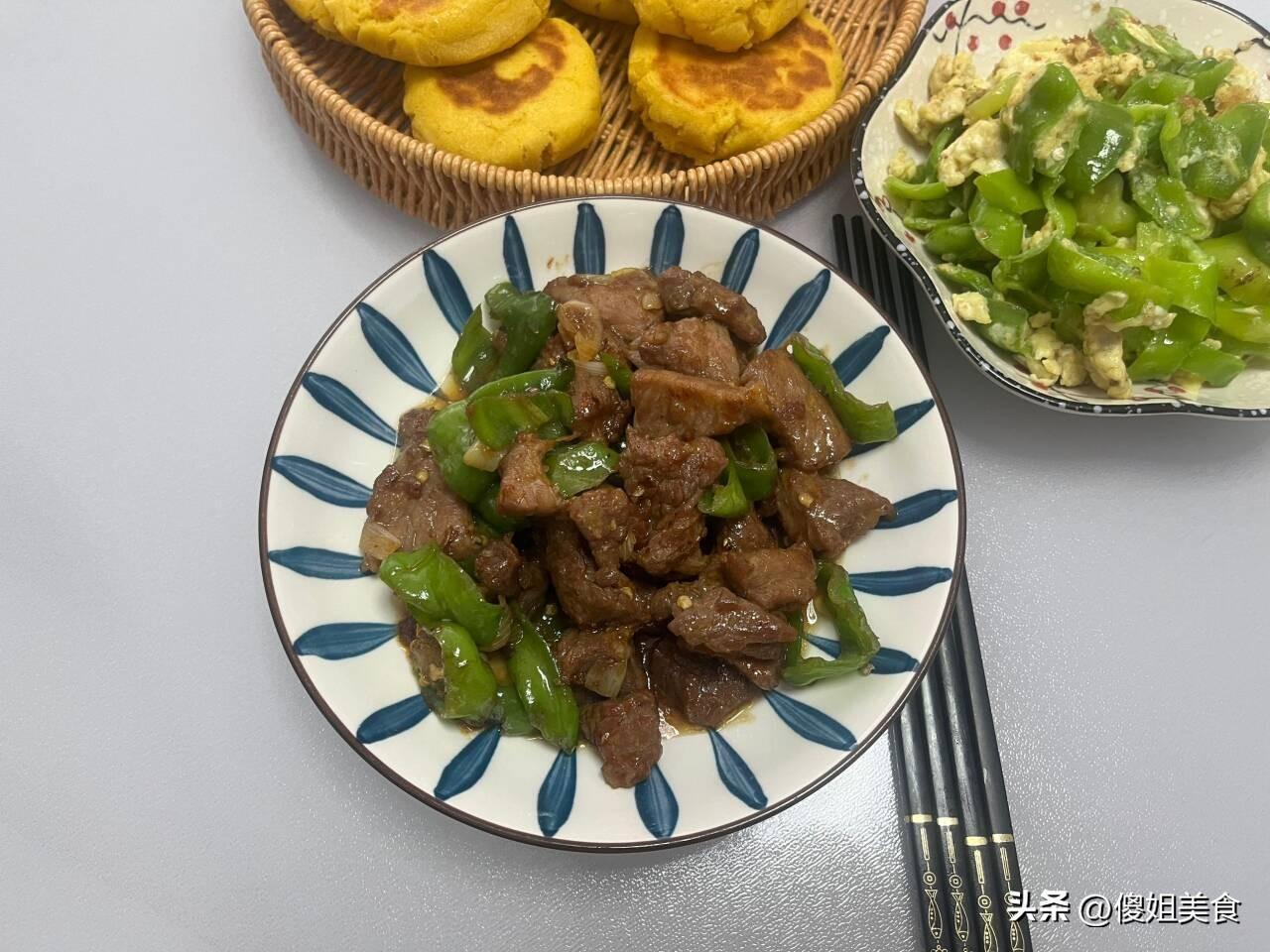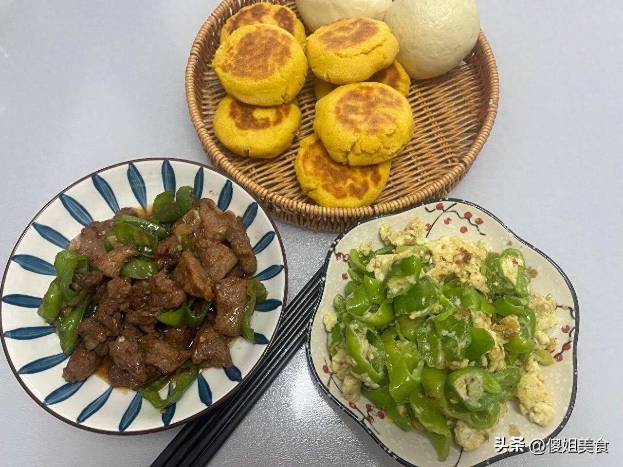 這樣煎烙出來的玉米餅外脆裏軟,很好喫,搭配炒的兩個菜,簡單營養的午餐飯就好了。年齡大了越來越喜歡喫粗糧,有條件的還可以放點黃豆麪和黑豆麪,按照這個方法做,簡單省事還好喫。今天中午喫的是真飽,連菜都沒剩下,光盤行動。