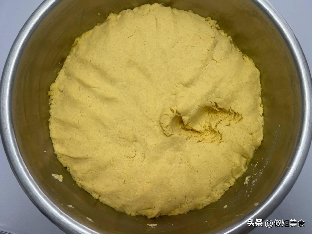 取適量的玉面,往裏倒入酵母粉、少許小蘇打(讓餅子更選軟),用冷水攪合,和好後放在暖和的地方發酵1個小時左右就可以。發酵好的玉米麪用手攪動排氣就可以,不像揉麪團一樣不需要揉搓。