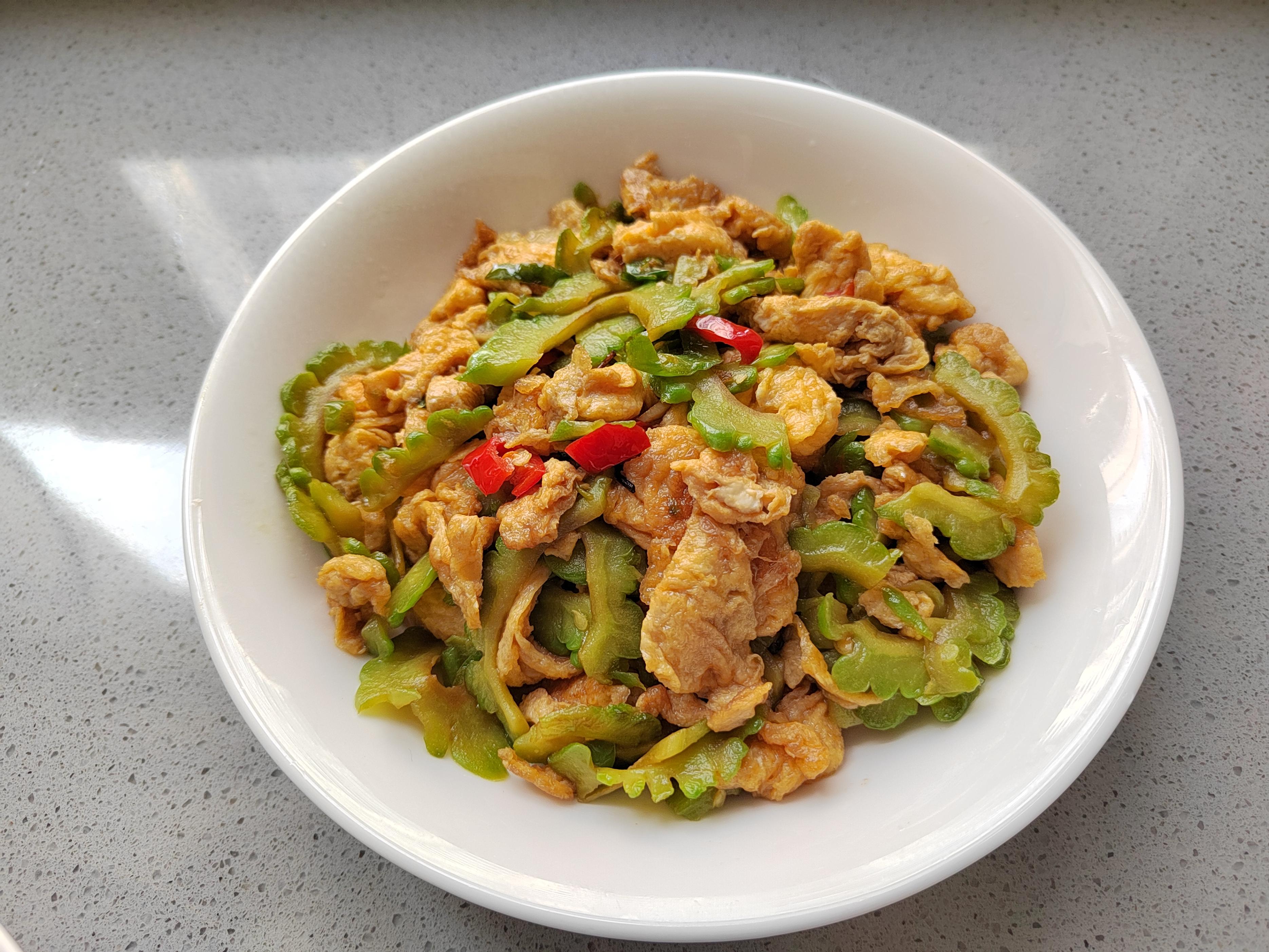 【苦瓜炒蛋】我很喜歡喫的一道家常菜。我屬於易上火體質,每次回來,母親都會給我做這道菜。苦瓜用鹽醃製後基本上沒有苦味,黃澄澄的雞蛋是自家的土雞蛋,喫起來特別的香。炒苦瓜的時候加了一點辣椒,喫起來不是很辣,看起來更有食慾。