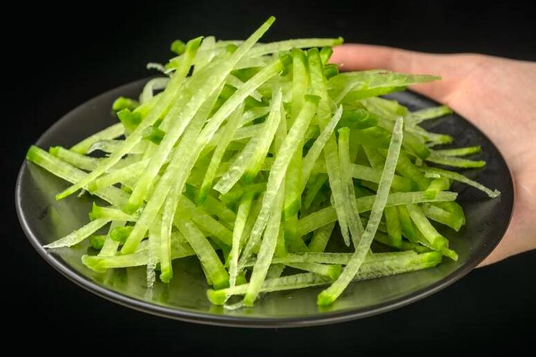 1、準備一根青蘿蔔,將其放到水中稍微清洗一下,然後把水分控幹以後,將其放到案板上,切成絲狀備用,或者直接用擦絲的功夫擦成絲。