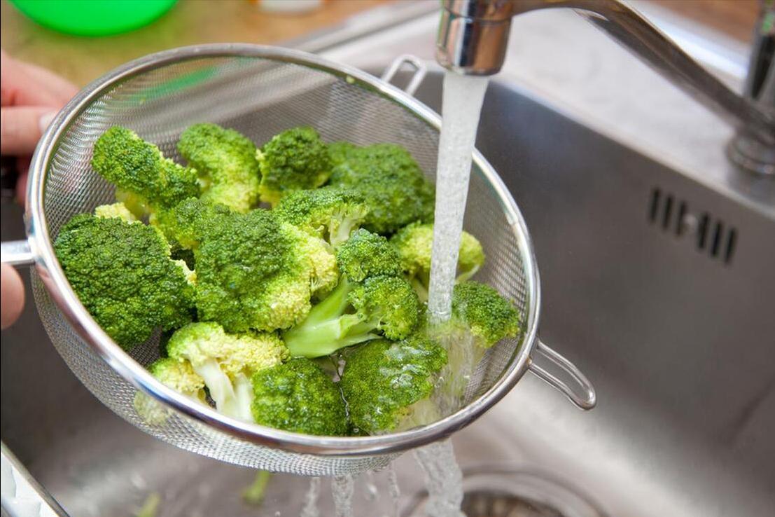 3、等到西蘭花泡好之後,我們用清水多衝洗幾遍,然後再將水分控幹。接下來往鍋中倒水,等燒開之後先來1勺鹽,接着把西蘭花倒進去焯水,焯水之後的西蘭花,撈出來把水分控幹,放在一旁備用。